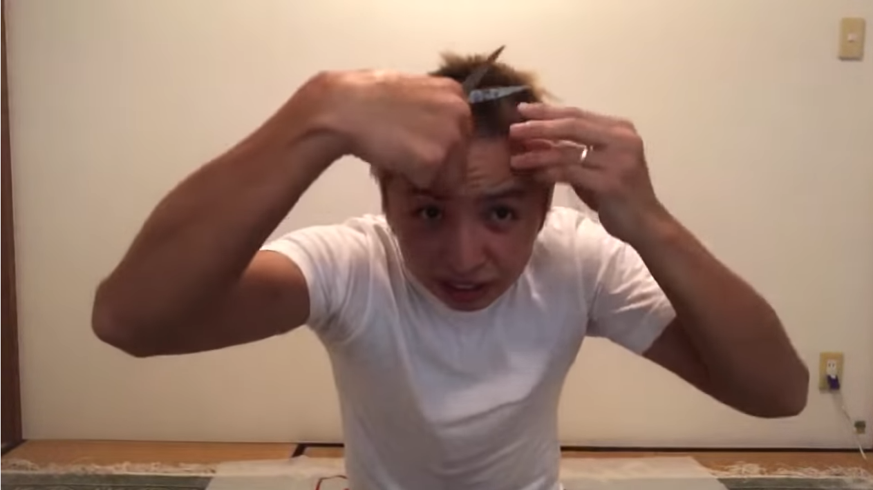 「家族に合わせる顔がない」と話してハサミを取り出すと、おもむろに自身の髪を切り始めました。