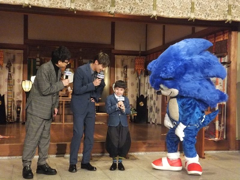 吹替版声優の中川大志さん(ソニック役)、山寺宏一さん(ドクター・ロボトニック役)、寺島眞秀さん(ベビーソニック役)、そしてソニックも登場し、