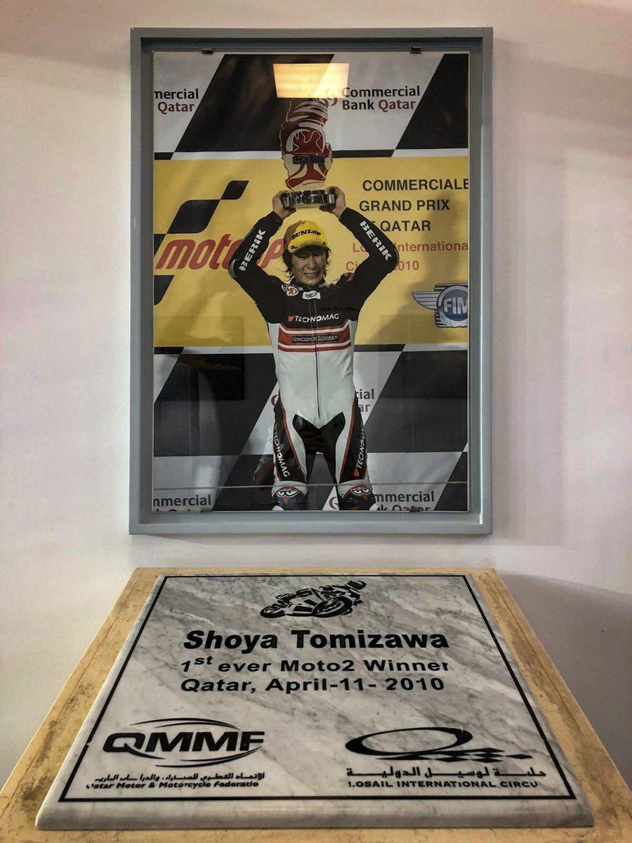 表彰式を終えた長島は、ピットビルディング一階にある富沢祥也のモニュメント前で記念撮影をした。表彰台上でトロフィーを頭上に掲げるパネルの中の富沢の姿と同じポーズを決めた長島は、撮影を終えるとモニュメントのプラークにそっと右手を添え、数瞬ほど頭を垂れたまま黙って立っていた。プラークには、”Shoya Tomizawa 1st ever Moto2 Winner Qatar, April-11-2010(富沢祥也 Moto2史上最初の優勝者 カタール 2010年4月11日)”と文字が刻まれている。長島のうつむき加減の顔は、少しゆがんでいるようにも見えた。そのとき何が彼の胸中に去来していたのかは、あえて訊ねずにおいた。